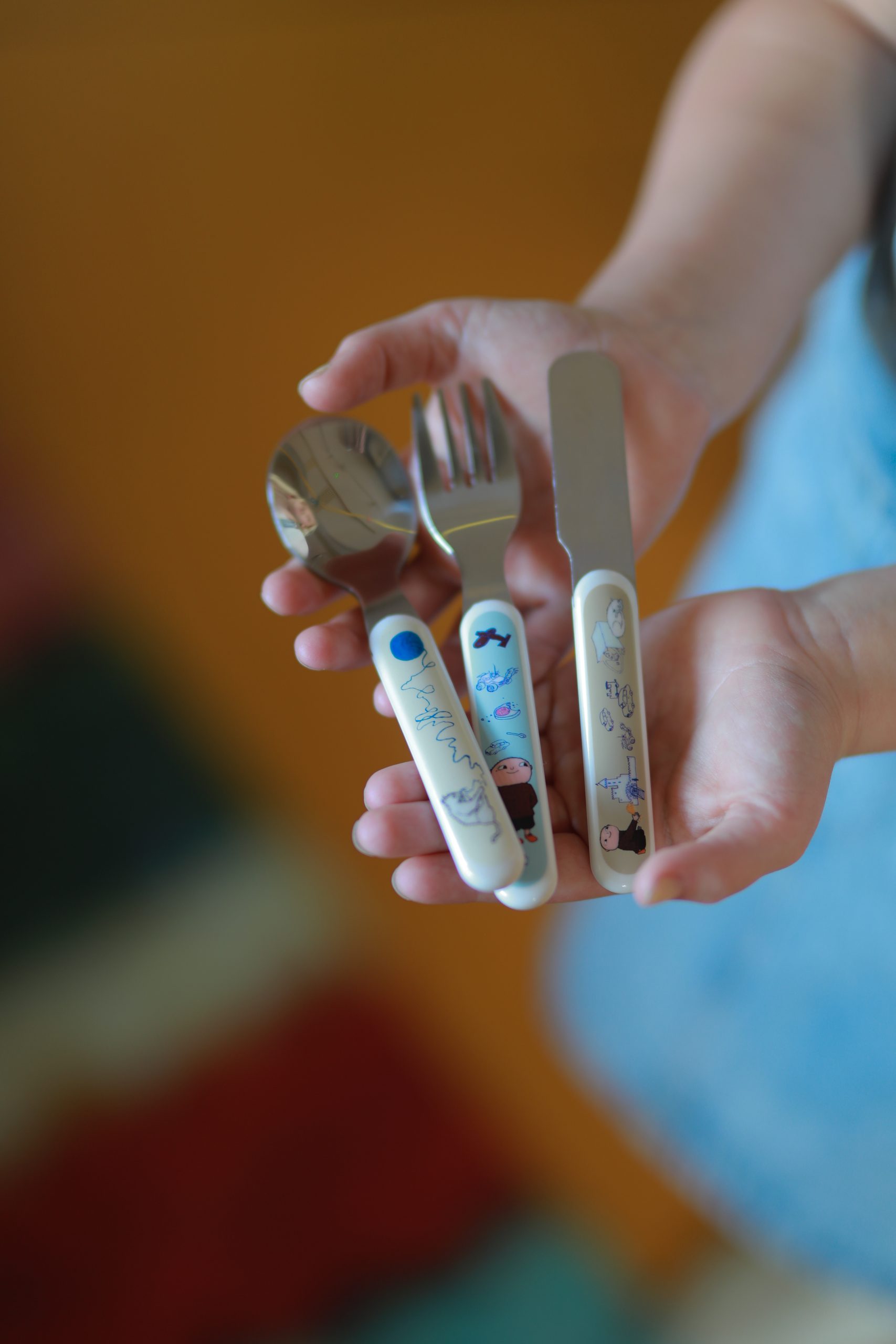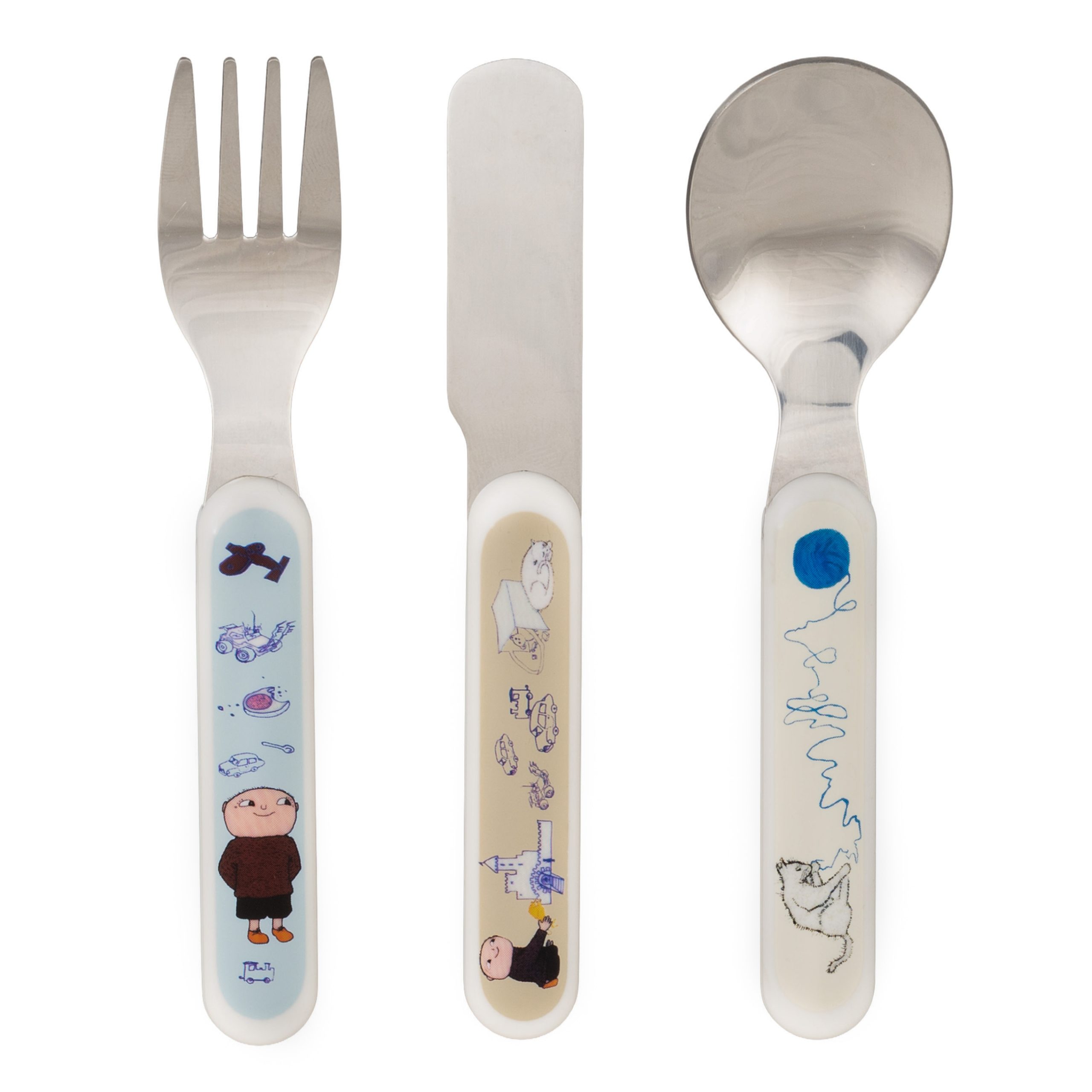 Tåliga barnbestick i ABS-plast och rostfritt stål. Kniv, gaffel och sked som passar små händer och munnar. Levereras i en fin och praktisk presentkartong. Produkten är tillverkad i en mycket fin fabrik som är certifierad av BSCI för goda och säkra arbetsförhållanden. Fabriken är certifierad enligt kvalitetsledningssystemet ISO 9001 för att säkerställa god hantering av produkter som skall användas med mat.