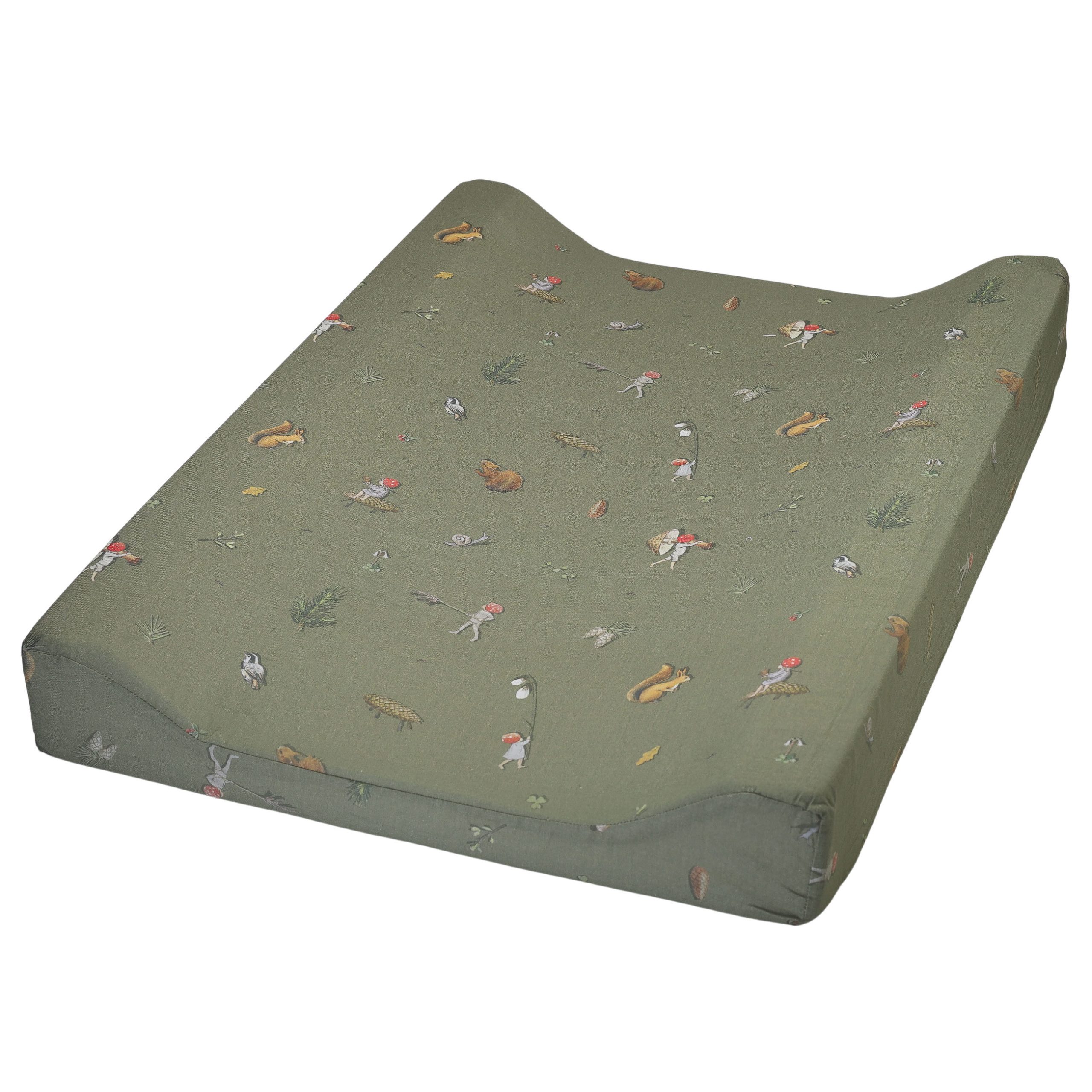 Praktisk skötbädd från Rätt Start kollektion Elsa Beskow Tomtebobarnen. Med en polyeterfyllning och upphöjda kanter ligger barnet mjukt och säkert. Skötbädden har en vattenavvisande yta som gör att den enkelt kan torkas av. Använd gärna ett extra bäddskydd så håller sig produkten fräsch längre. Yttertyget är certifierat enligt MADE IN GREEN by OEKO-TEX®, en spårbar etikett som intygar att det är testat och fritt från ämnen som kan vara skadliga för hälsan och miljön. Detta utförs genom certifiering i enlighet med STANDARD 100 by OEKO-TEX®. Dessutom garanterar MADE IN GREEN by OEKO-TEX®-etiketten att produkten har tillverkats med hållbara processer under socialt ansvarstagande arbetsförhållanden. Tillverkningskedjan kan spåras via en unik QR-kod på etiketten. Överdraget går att tvätta i maskin men tänk på att tyget kan krympa något. Plantorka och dra försiktigt i tyget så att fibrerna blir längre, när skyddet ska sättas tillbaka tänk på att inte ta i vid dragkedjan då sömmen kan gå sönder.