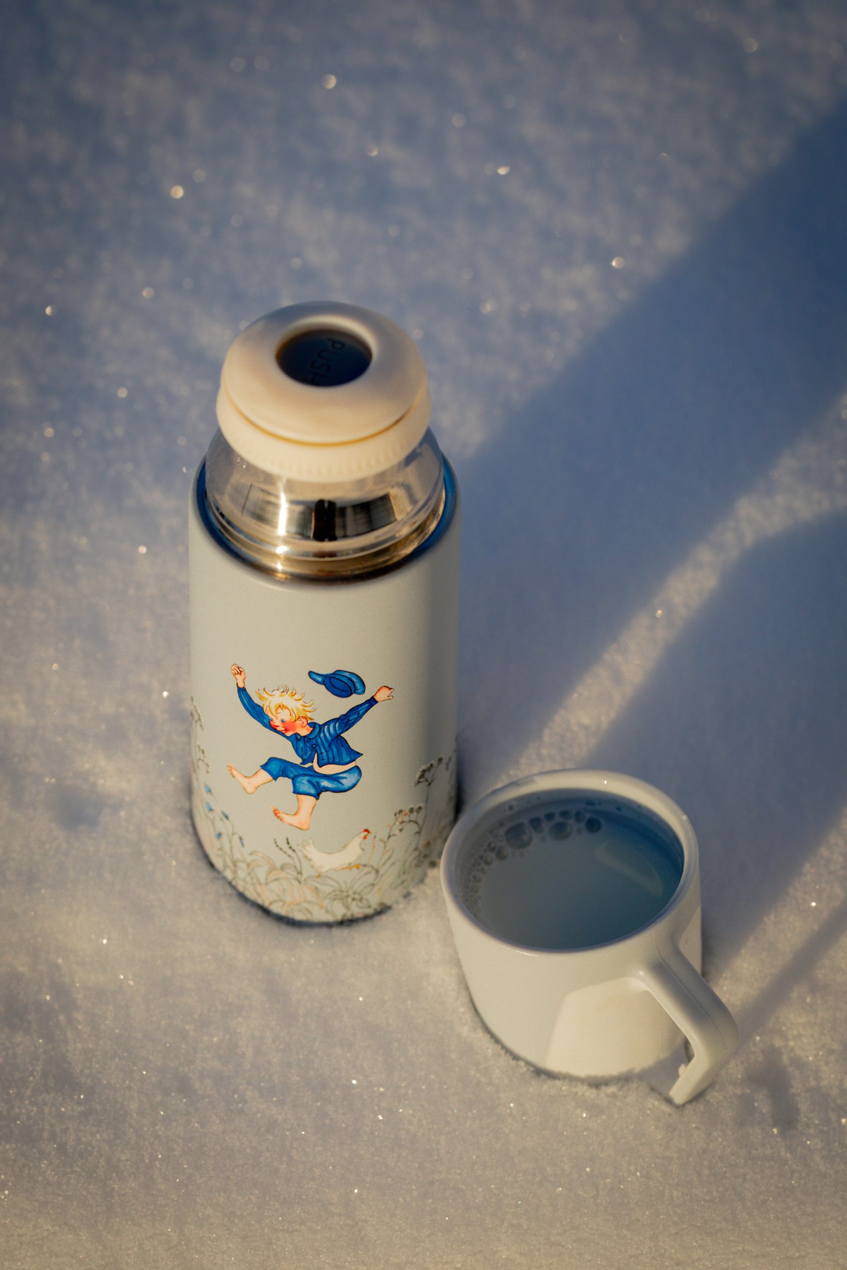 En underbar termos i rostfritt stål med motiv från Emil i Lönneberga. Termosen rymmer 350 ml varm eller kall vätska och passar lika bra på vinter-utflykten som på badstranden.