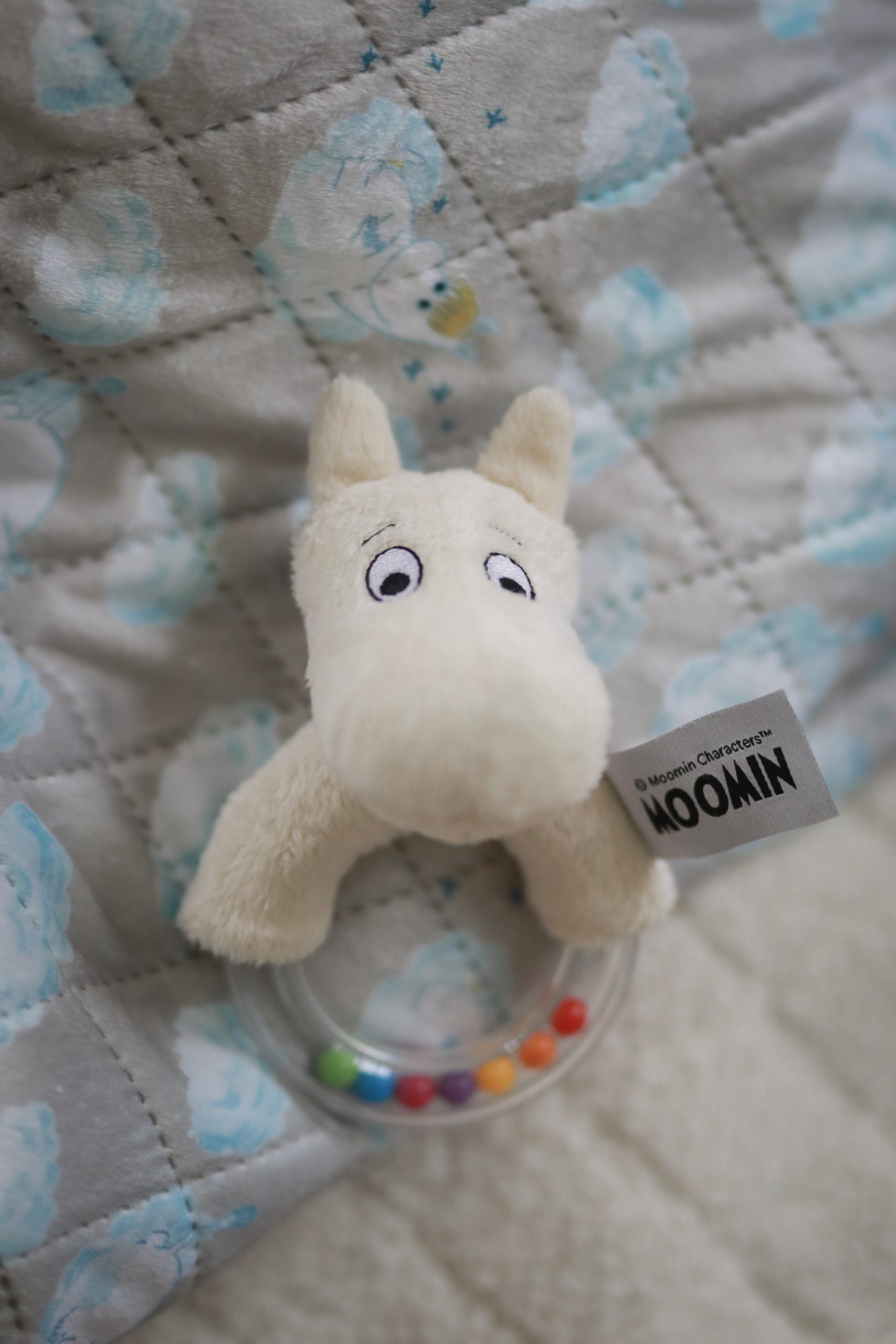 Lekfull skallra med Mumin. Perfekt för att uppmuntra finmotoriska och sensoriksa färdigheter. Lätt att greppa och har ett skallrande ljud som stimulerar barnets hörselsinne. Leksaken är testad och godkänd enligt EN-71.