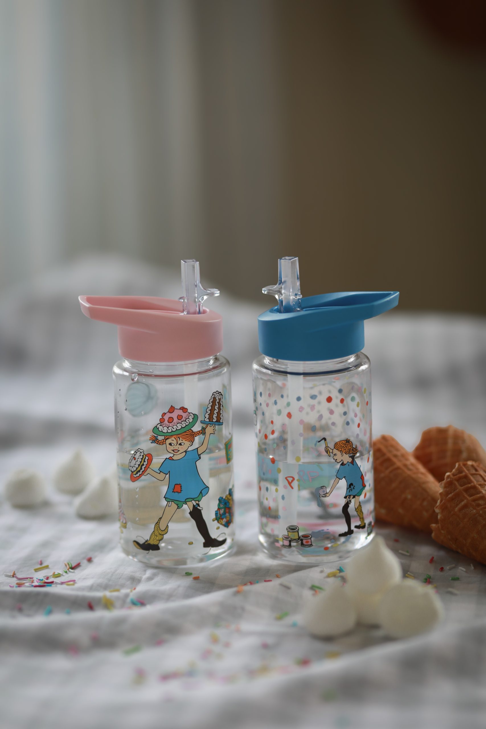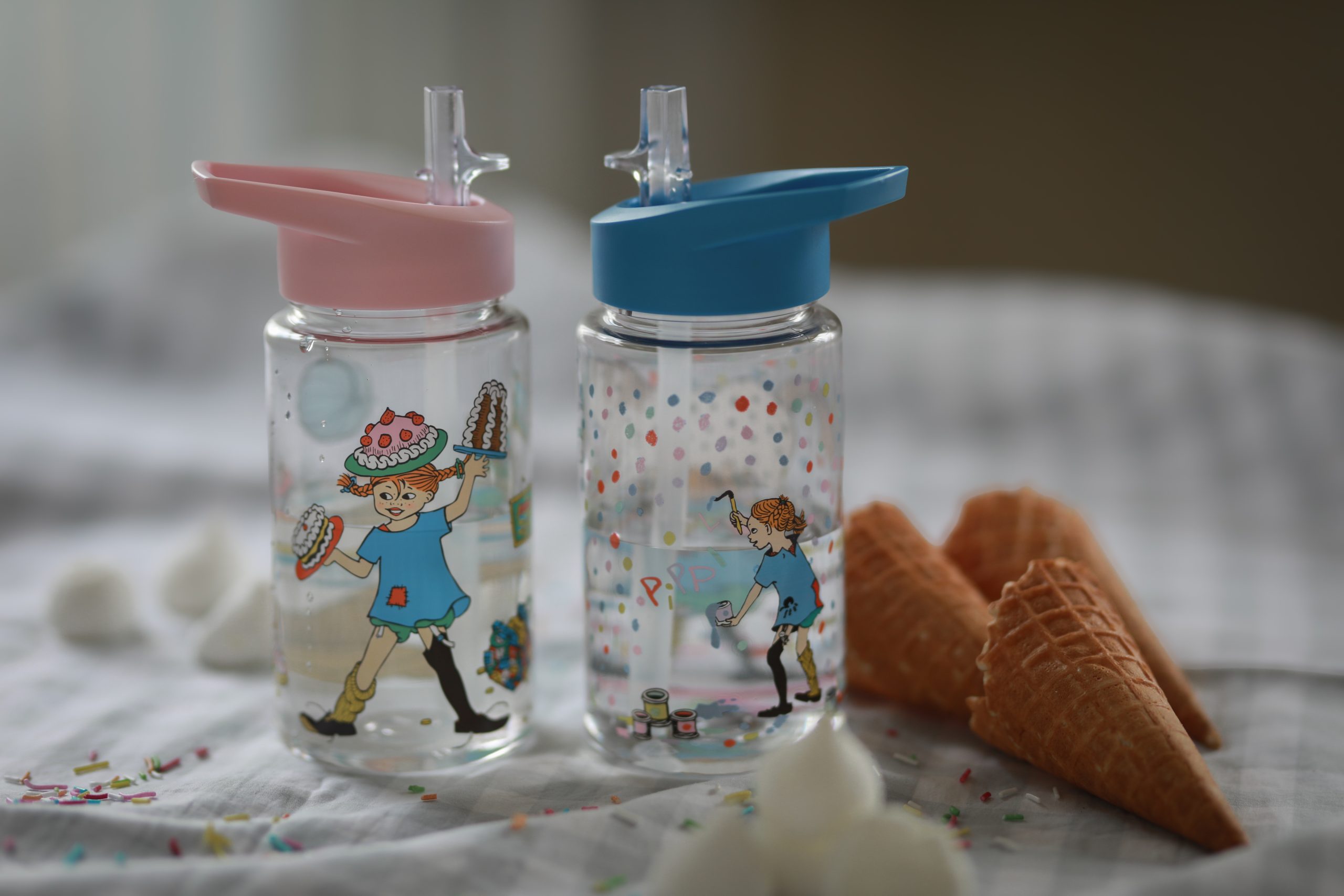 Vattenflaska tillverkad i tålig BPA-fri plast med underbart motiv från Pippi Långstrump. Flaskan är smidig att dricka ur och pipen är lätt att både stänga och öppna. Det inbyggda sugröret minskar spill och upptill finns ett praktiskt bärhandtag. Rymmer 550 ml.
