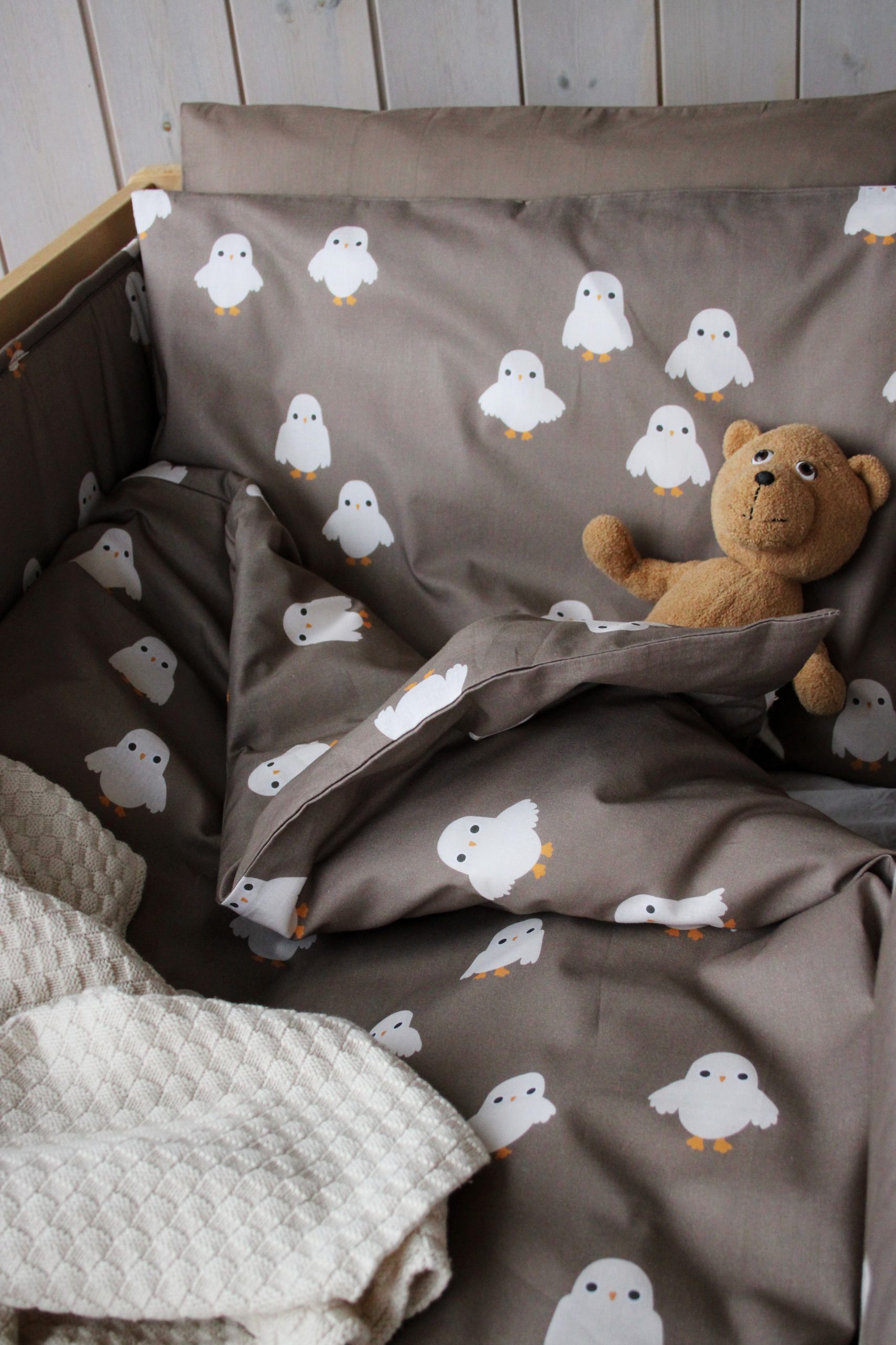 Påslakan och örngott till spjälsäng från vår kollektion Owls. Tillverkat i ekologisk bomull. Produkten är certifierad enligt MADE IN GREEN by OEKO-TEX®, en spårbar etikett som intygar att den är testad och fri från ämnen som kan vara skadliga för hälsan och miljön. Detta utförs genom certifiering i enlighet med STANDARD 100 by OEKO-TEX®. Dessutom garanterar MADE IN GREEN by OEKO-TEX®-etiketten att produkten har tillverkats med hållbara processer under socialt ansvarstagande arbetsförhållanden. Tillverkningskedjan kan spåras via en unik QR-kod på etiketten.
